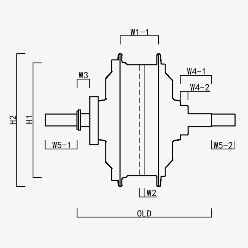 • Un potente motor de buje de tracción trasera diseñado específicamente para bicicletas eléctricas con neumáticos gruesos, con un volante giratorio de 7 velocidades, una apertura de engranaje de 160 mm y una potencia nominal de hasta 500 w.